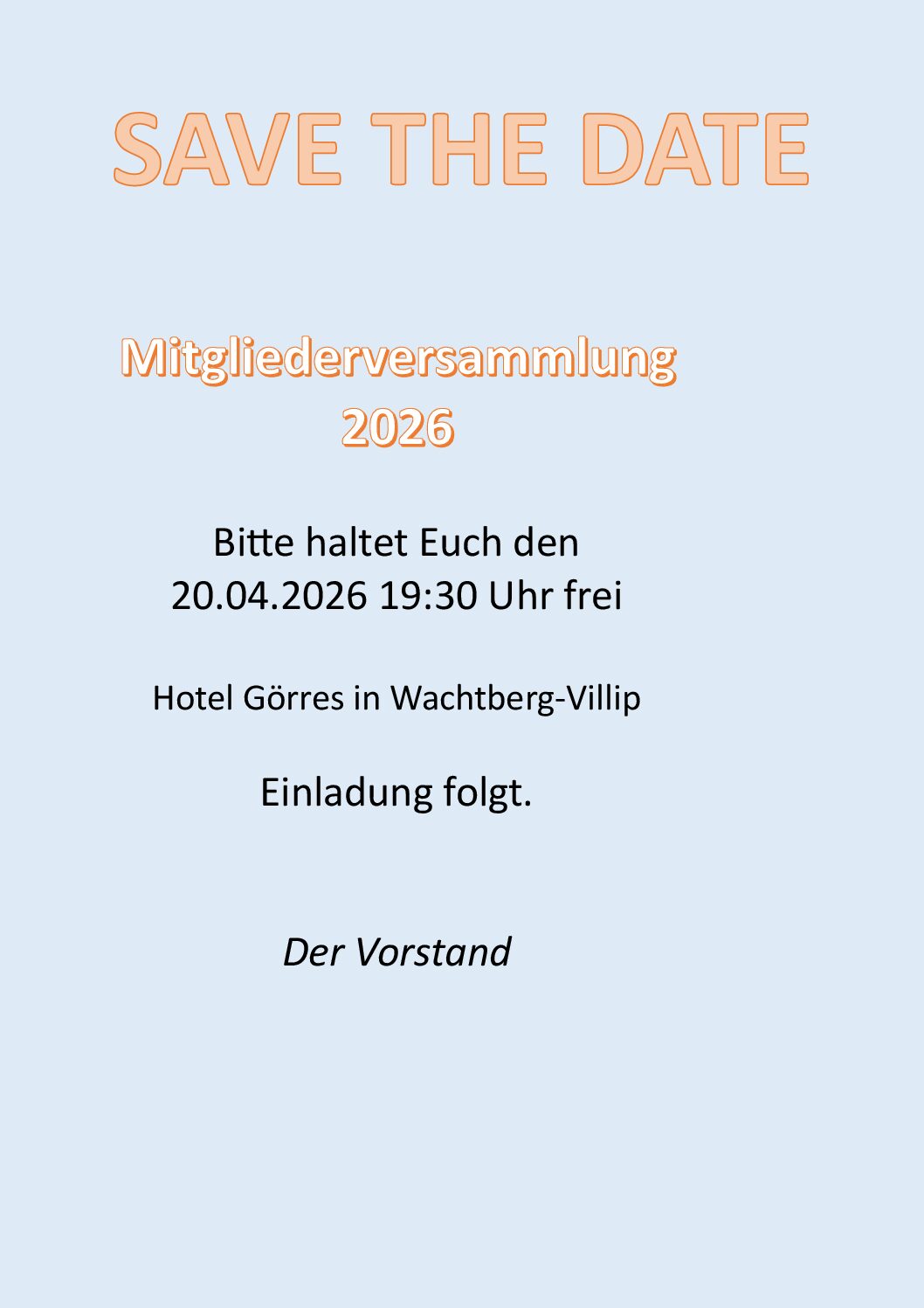 Weitere Infos und die Einladung erfolgen fristgerecht per Mail und finden Sie dann an dieser Stelle.